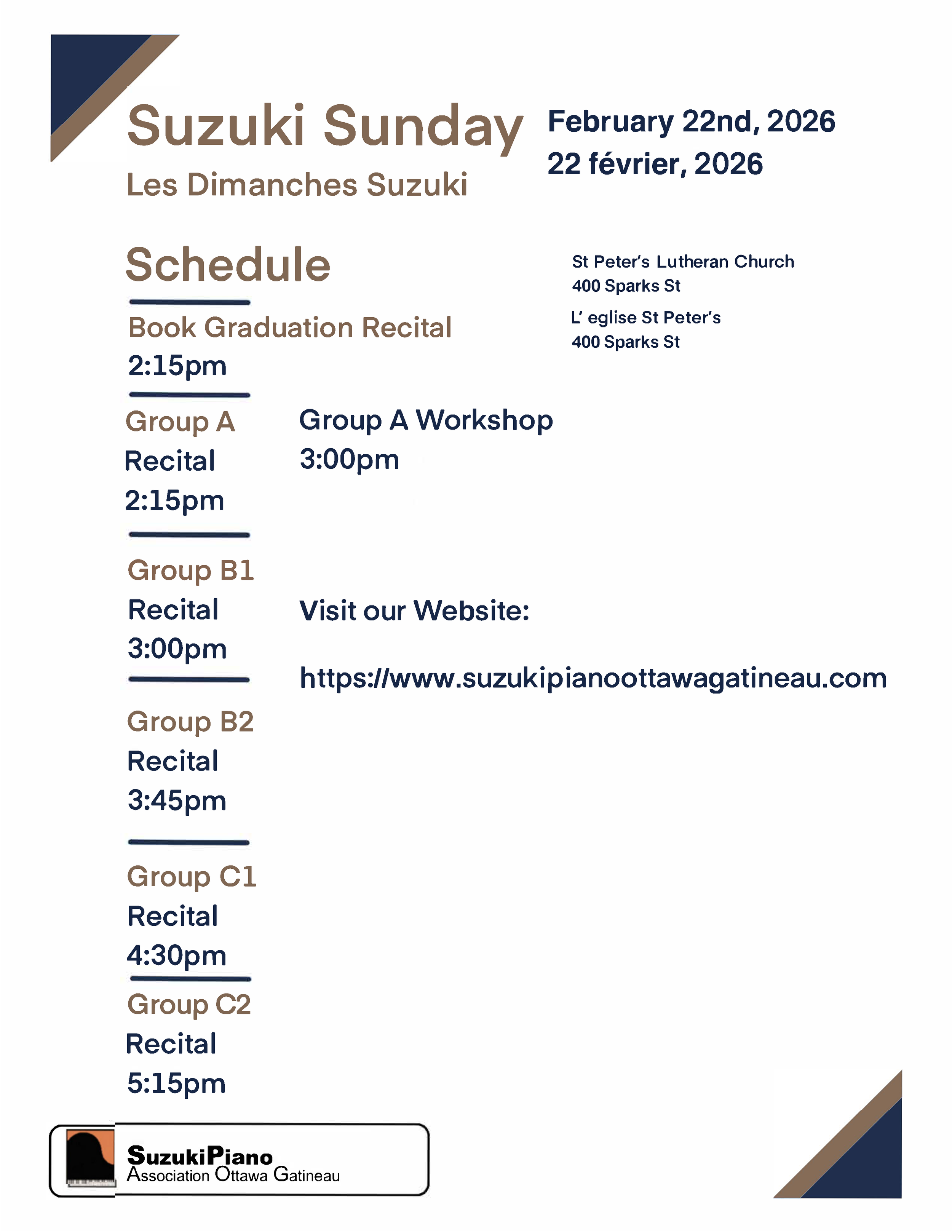 Suzuki Sunday- LOCATION CHANGE @ St. Peter’s Lutheran 400 Sparks St Feb 22 Written By Victor Avila ‘Download this poster in PDF Victor Avila
